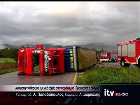 Ανατροπή νταλίκας σε κυκλικό κόμβο στην παράκαμψη - Τραυματίας ο οδηγός - ITV Ειδήσεις 10/11/2025